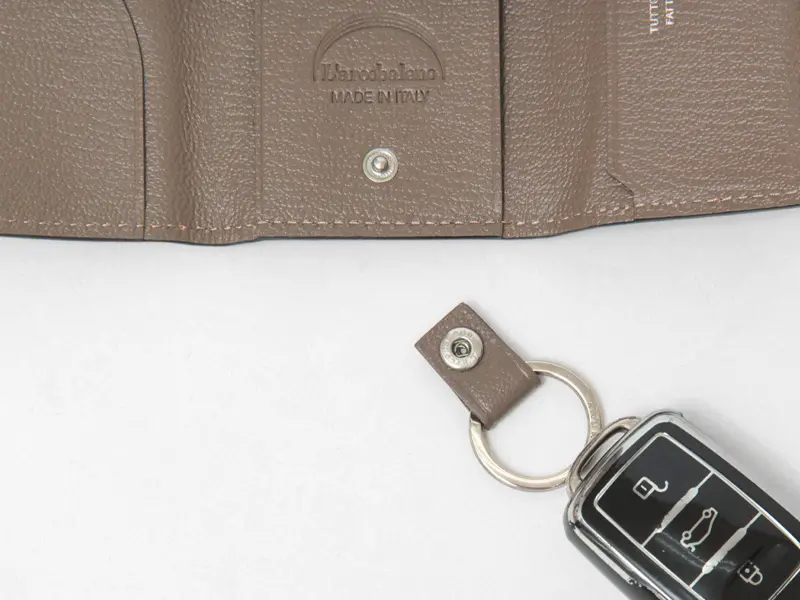 熟練の職人が手掛けるMADE IN ITALYのレザーブランド、"L'arcobaleno/ラルコバレーノ"のキーケース。 手のひらに収まるスマートな三つ折りデザインに、5連のキーフックを装備。 スナップで着脱可能なリング付きで、スマートキーの取り付けも簡単です。 お財布とお揃いでコーディネートを楽しむのもおすすめです。