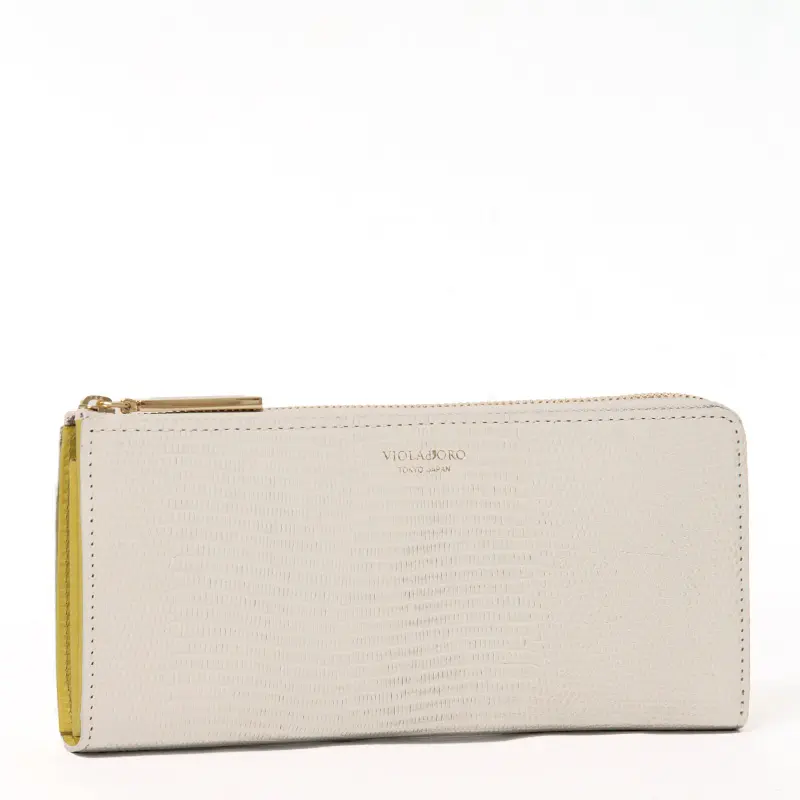 VIOLAd'ORO ヴィオラドーロ PORTA リザード型押しレザー L字長財布 V-5039 アイスグレー/シトラス
