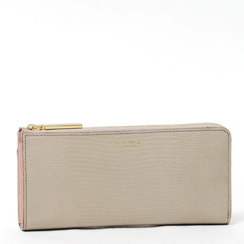VIOLAd'ORO ヴィオラドーロ PORTA リザード型押しレザー L字長財布 V-5039 グレージュ/トープ