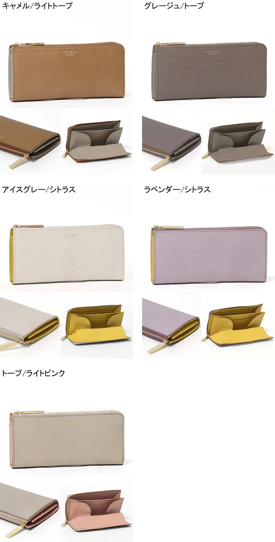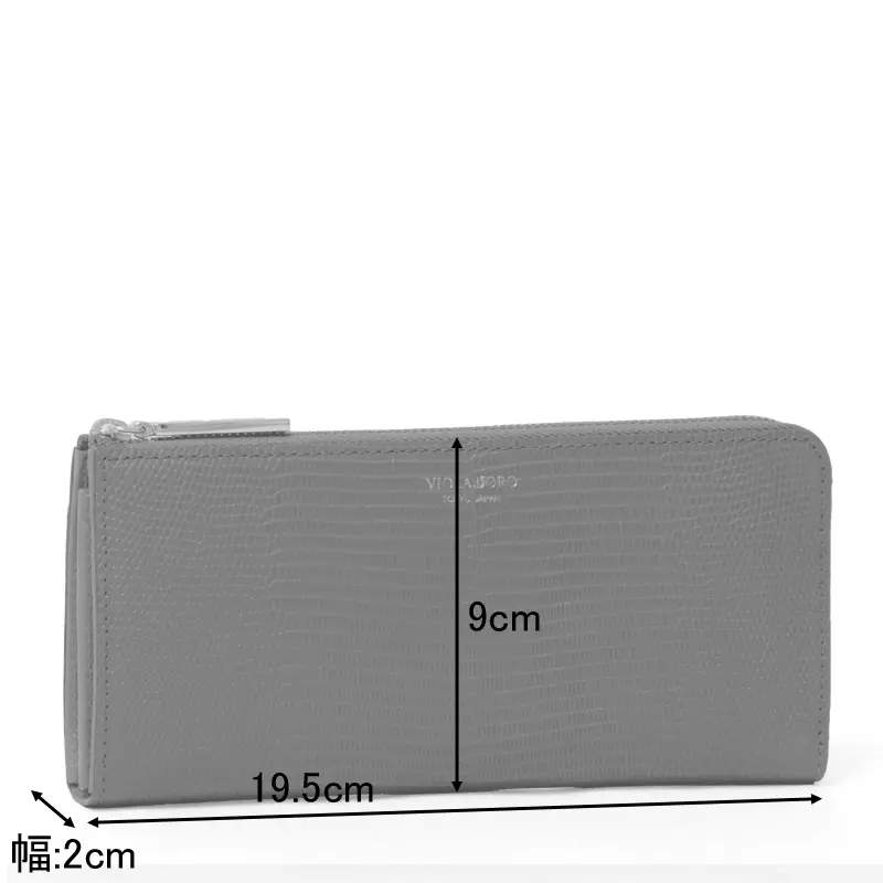 VIOLAd'ORO ヴィオラドーロ PORTA リザード型押しレザー L字ファスナー 長財布 アイスグレー/シトラス