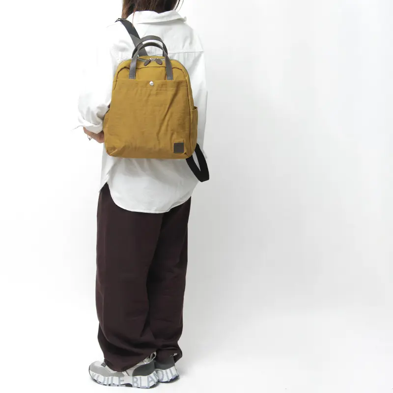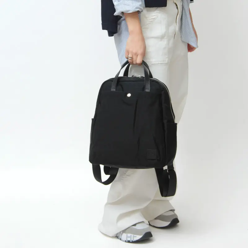 ヴィンテージ感をまとった上質なナイロン素材が魅力で、普段使いから旅行やアウトドアまで幅広く対応。長く背負っても疲れにくい軽やかな使い心地で、どんなスタイルにもすっと馴染む洗練されたリュックです。カジュアルにもきれいめにも合わせやすく、オン・オフ問わず活躍します。
