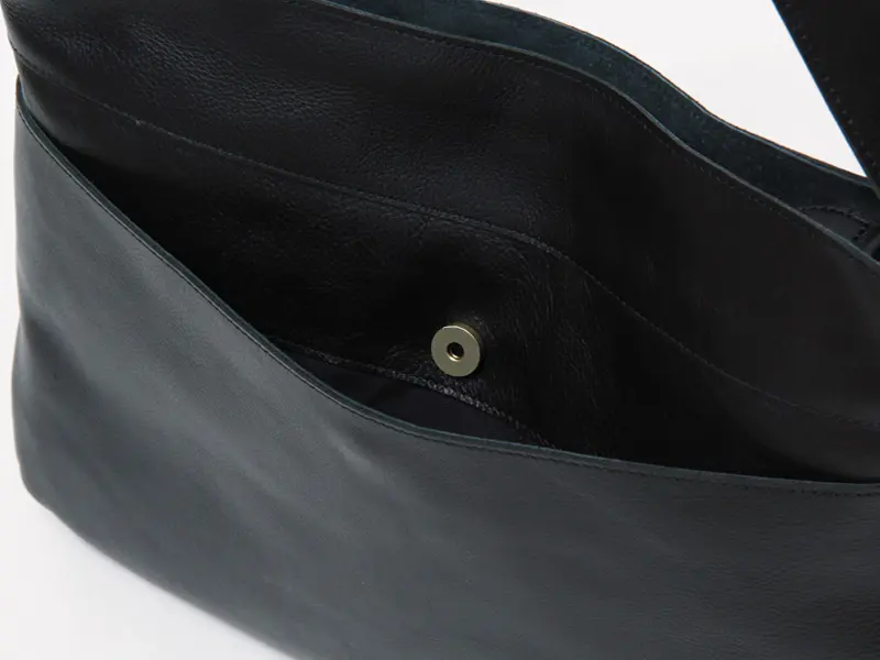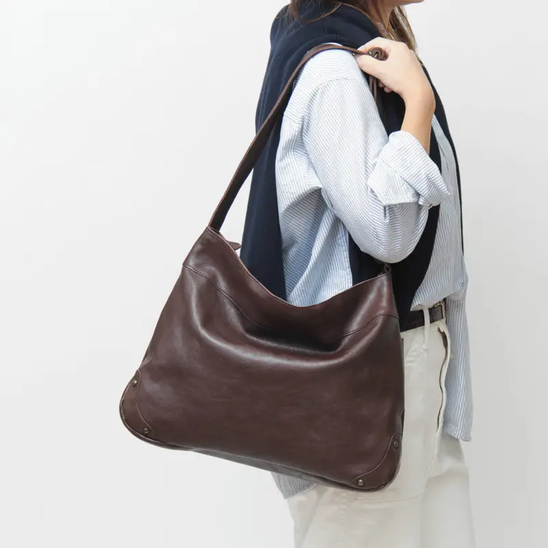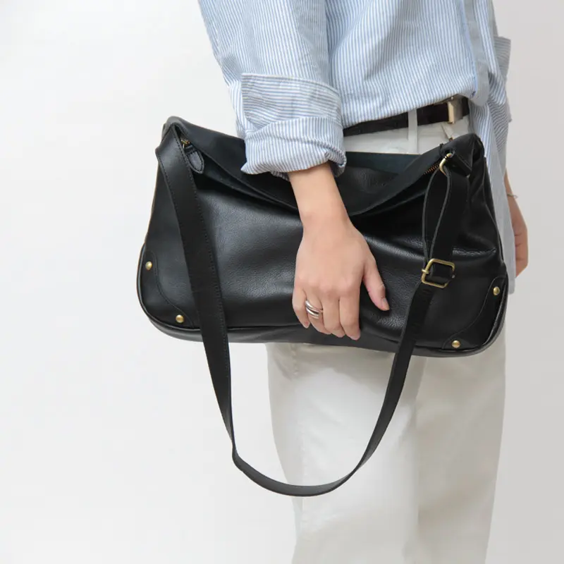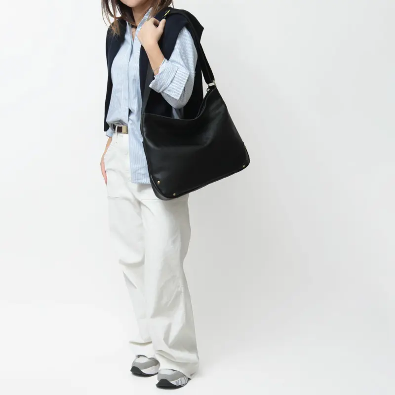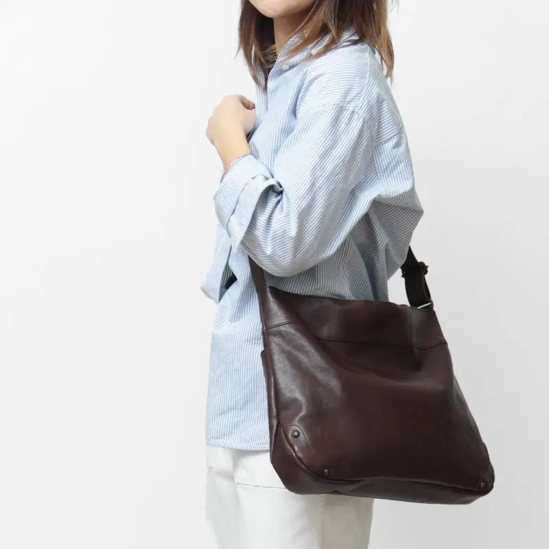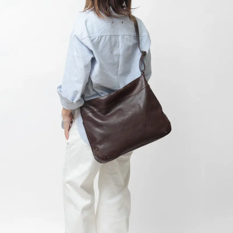 無駄のないシンプルなデザインは、カジュアルからビジネスまで幅広いスタイルに自然と馴染みます。ショルダーは長さ調節ができ、斜めがけしてクロスボディとしても使えるため、シーンに合わせた持ち方が可能です。しっとり柔らかな牛革は、肩や腕への当たりもやさしく、快適な使い心地を叶えます。