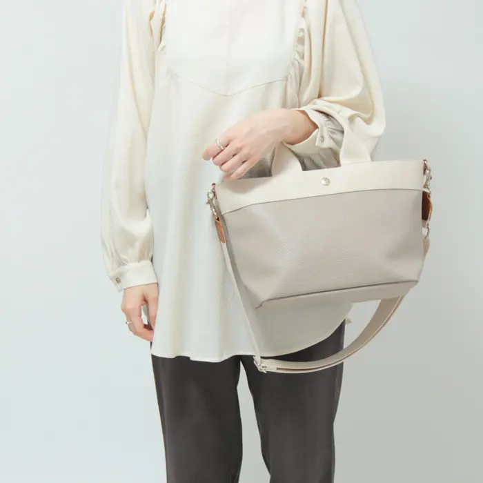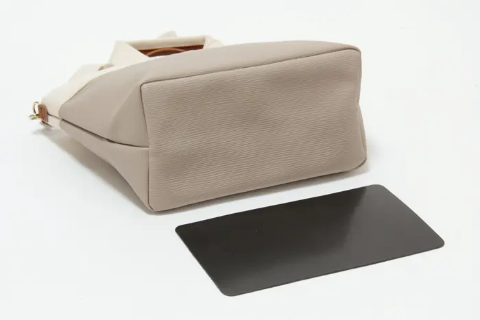 底板入りで型くずれしにくく、荷物を入れてもいつでも美しいシルエットを保てます。鞄を置いたときも安定感があり、安心してお使いいただけます。