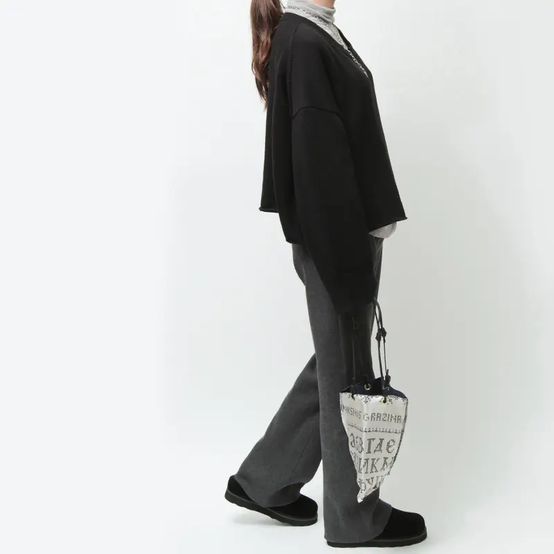 本体には滑らかな手触りのシルク素材を採用。ハンドル部分は長さを自在に変えられるため、手持ち・肩掛けのどちらにも対応。コーディネートに合わせてバランスよく持ち方を変えられます。