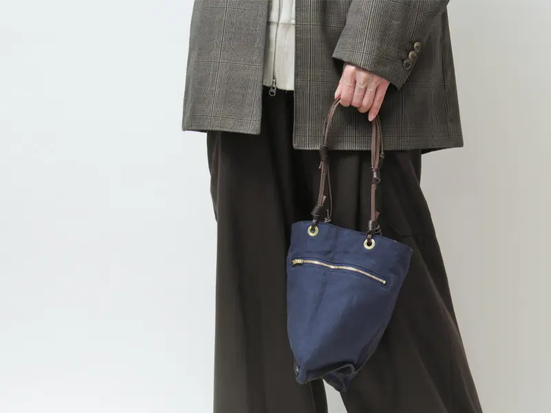 裏返すだけで麻×コットンの素朴な風合いが楽しめる、表情豊かなミニトート。必要なものがコンパクトに収まるサイズ感は、ちょっとしたお出かけにも便利です。