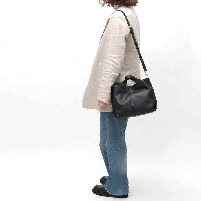 カジュアルなスタイルにも、きれいめな装いにも自然となじむ万能トート。手持ち・肩掛けのどちらにも対応する2WAYデザインで、両手を空けて動きたい日にも重宝します。
