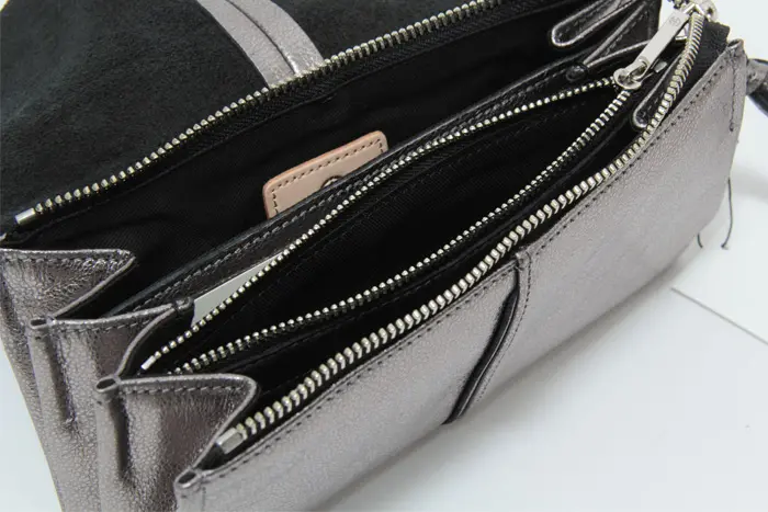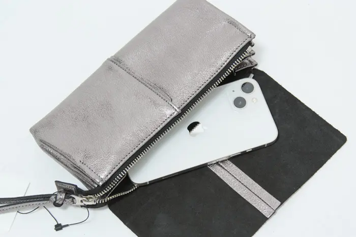 フラップ&ファスナーの二重構造でセキュリティ面も安心。レザーコード付きの引き手は開閉しやすく、見た目のアクセントにも。 ジャバラマチは大きく開くので視認性が高く、会計時もスムーズです。