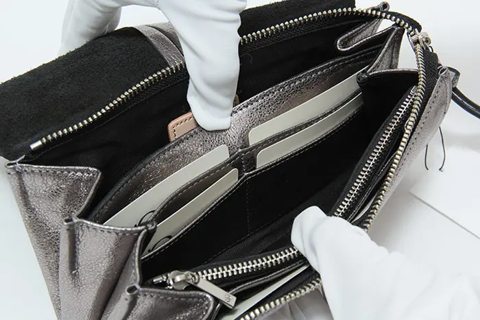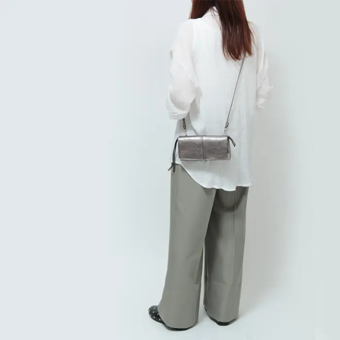 SILVER / LIGHT GOLD:イタリア製の箔加工を施した牛革を使用。繊細な光沢が大人のスタイリングに映え、アクセサリーのような華やかさを添えます。