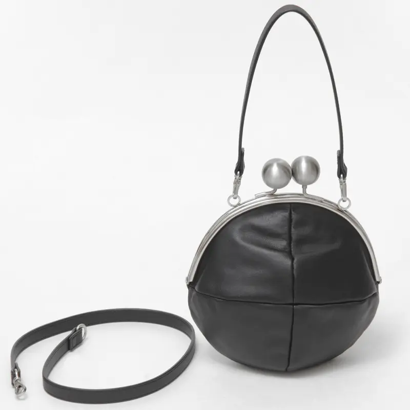 ブランドアイコン「大きな口金」と人気デザイン「25bisサークルトート」が融合した2WAYショルダーバッグ。ショルダーストラップの付け掛けで、ショルダーバッグとしてもハンドバッグとしても使える機能的なデザインです。