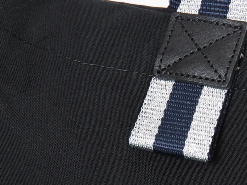 生地には塩縮加工を施したナイロンを採用。苛性ソーダに浸して繊維を縮ませることで、独特の凹凸感と自然なシボが生まれます。マットで落ち着いた質感は使うほどに雰囲気が増し、コーディネートにこなれ感をプラス。一般的なナイロンに比べてハリとコシがあり、自立するほどしっかりした素材で、日常使いにも扱いやすいタフさが魅力です。