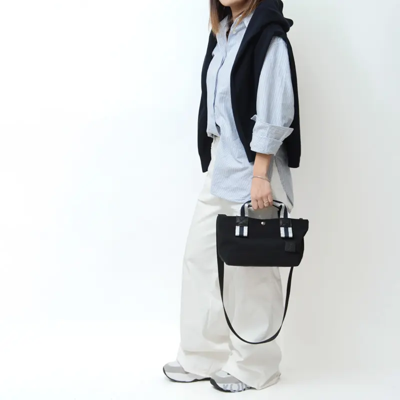 軽やかな使い心地が魅力のregalo(レガロ)「ZAC MIV」のミニトート。ナイロン素材ながら程よいハリをもたせた生地で、持ったときのシルエットがすっきり整います。ほんのり輝くラメテープがアクセントとなり、大人のカジュアルスタイルにさりげない華やぎをプラス。見た目はコンパクトでも、長財布・ポーチ・折りたたみ傘などお出かけ必須アイテムがしっかり入ります。普段のお出かけにも、ちょっとした移動にも便利なアイテムです。ショルダーにもなる2way仕様で、さらに使い勝手が広がります。