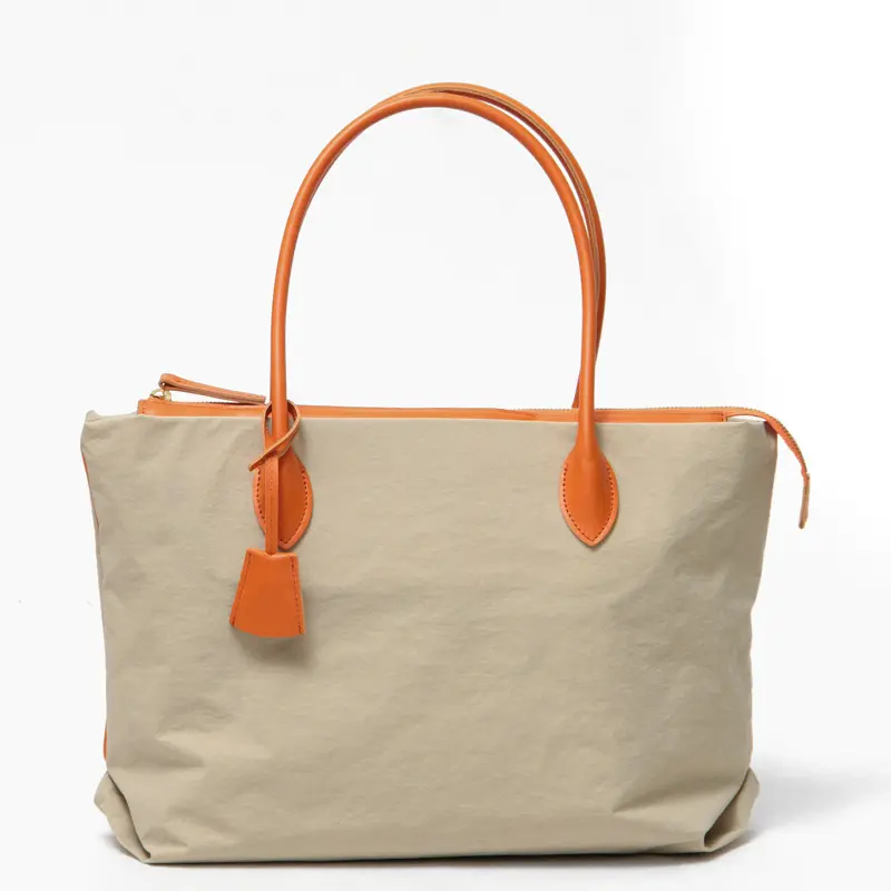 MUZICA VITA ムジカヴィータ コンブナイロン×牛革 トートバッグ ベージュ/オレンジ