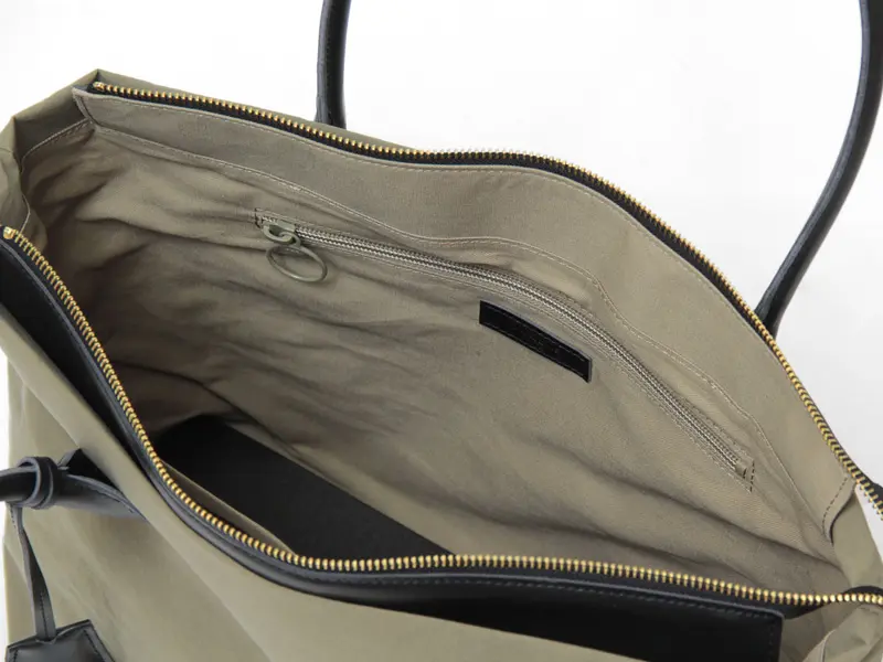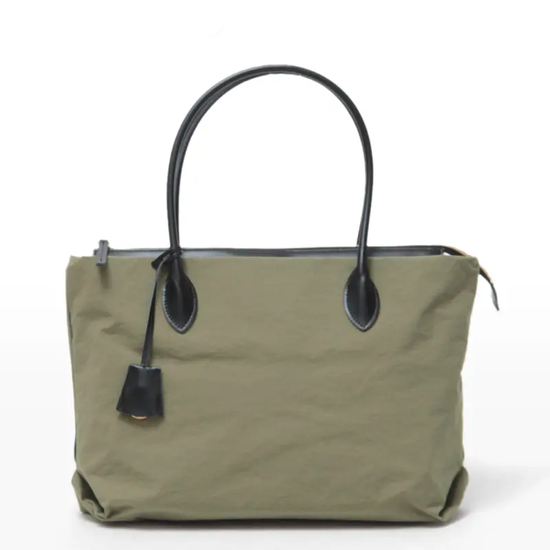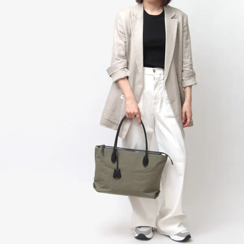 荷物が多くなってもストレスを感じさせない軽量設計。 A4サイズ対応の実用的なサイズは、通勤バッグやマザーズバッグとしても頼れる存在です。カジュアルにもきれいめにも馴染む上品なナイロン素材を使用しているため、着こなしを選びません。汎用性が高く、永くご愛用いただけるコンビネーショントートです。