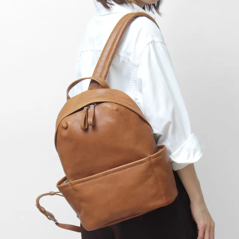 エレガントな女性のためのレザーバッグ・革小物を展開する日本発ブランド「MUZICA VITA(ムジカヴィータ)」。流行に左右されないシンプルなデザインと、確かな品質の本革リュックは、大人の女性にふさわしい逸品です。両手が自由になるので、旅行やショッピングにも最適。肩への負担が少ないよう、太めのショルダーベルトにもこだわった快適設計です。