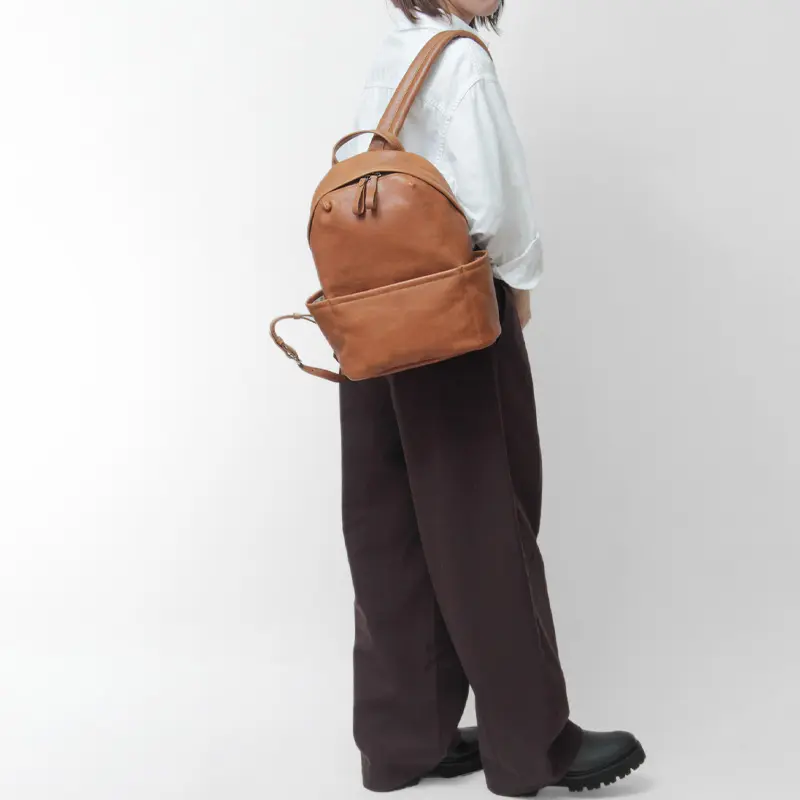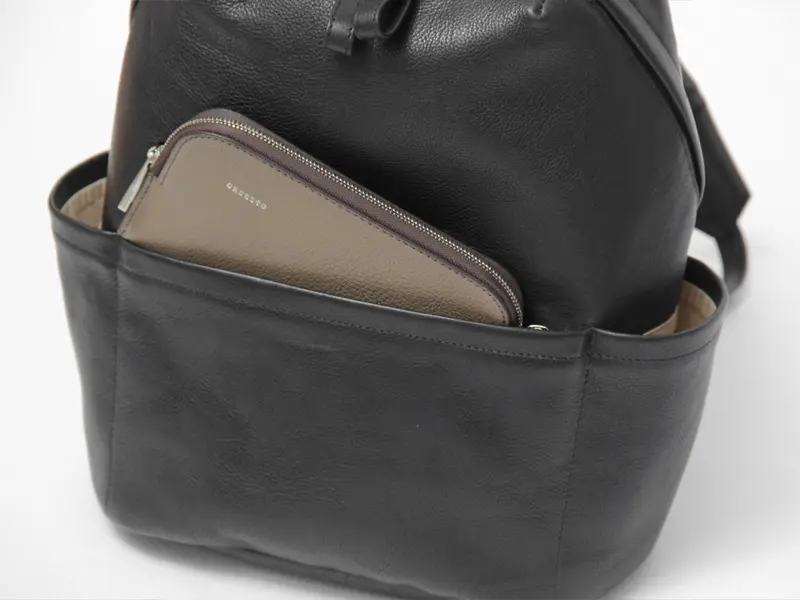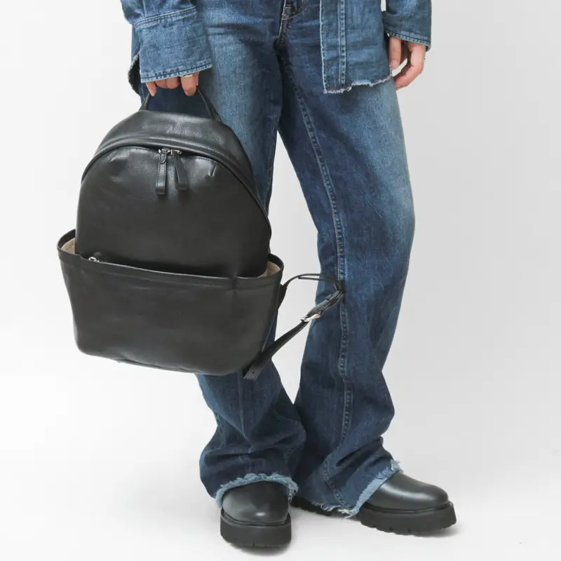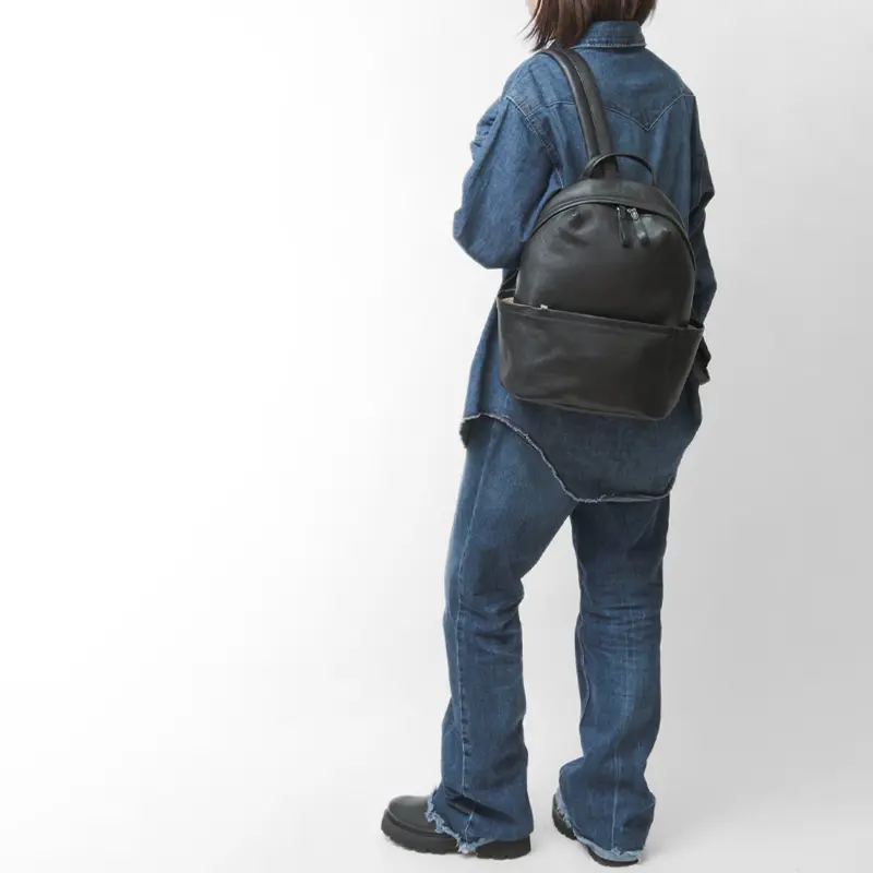 しっとりと肌に馴染むような、柔らかな牛革を使用しています。きめ細かなシボ感が上品で、カジュアルなスタイルにも高級感を演出。本革ならではの風合いは、時を経るごとに味わい深く変化し、お客様だけのバッグへと愛着とともに成長します。
