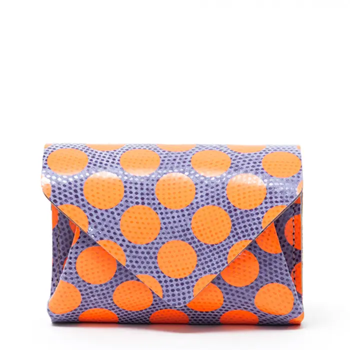 鮮やかなネオンカラーのドットを散りばめた、印象的なミニ財布。やわらかく手になじむ豚革スエードを使用し、軽やかな使い心地に仕上げました。丸みのあるフォルムは手のひらにすっと収まり、コンパクトながらもしっかり可愛さを感じられるデザインです。ミニバッグにもすっきり入るサイズ感で、デイリー使いに重宝します。