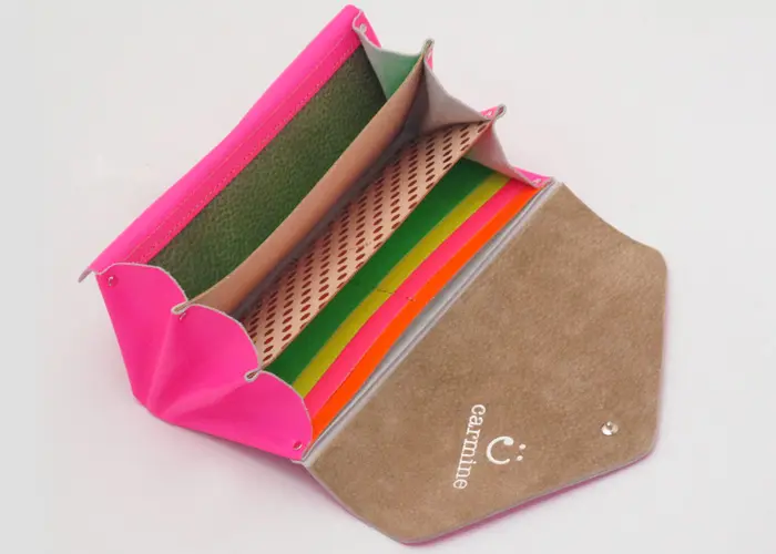 「Enjoy Accessory!」をコンセプトに掲げる日本発ブランド carmine(カーマイン) のロングウォレット。ビビッドなネオンカラーが印象的で、持つだけで気分を高めてくれるデザインです。シンプルなつくりながら、収納力と使いやすさを兼ね備え、日常使いに頼れる一品に仕上がっています。