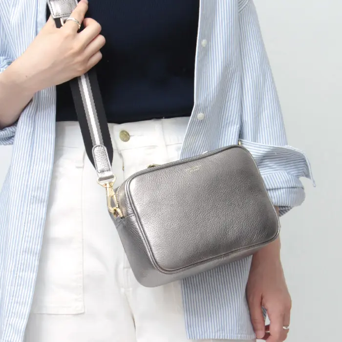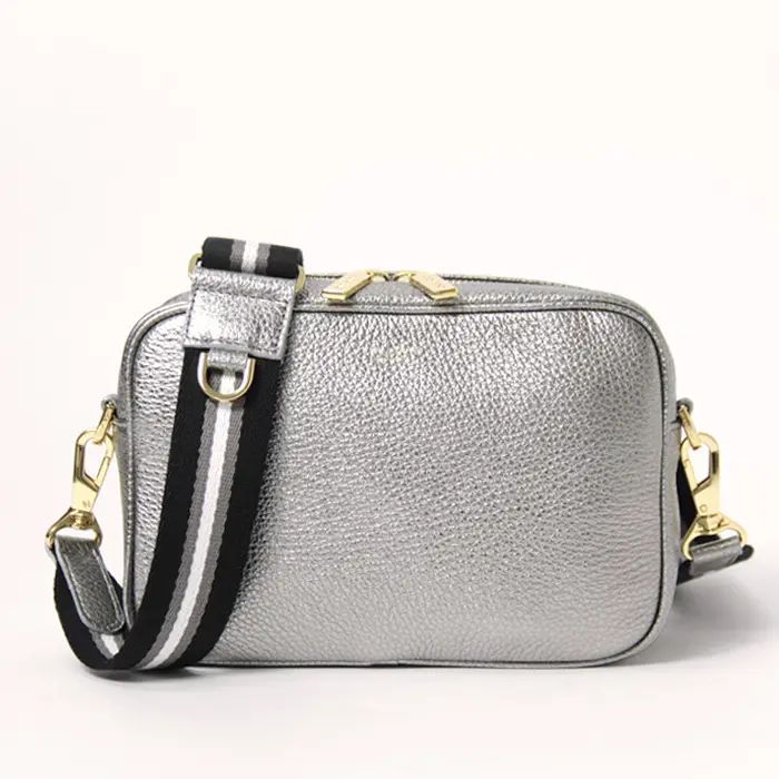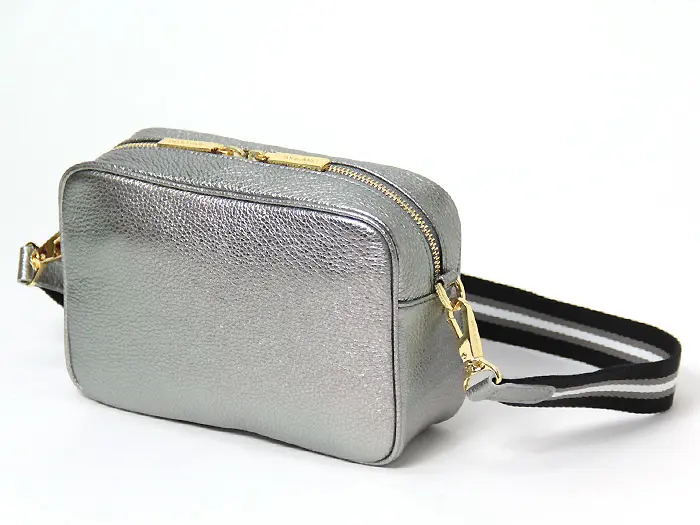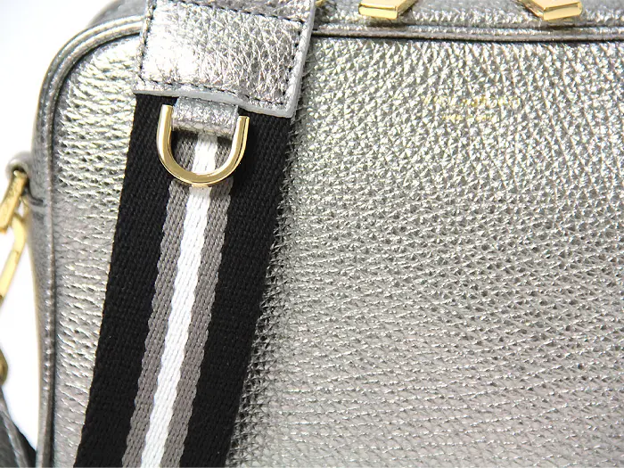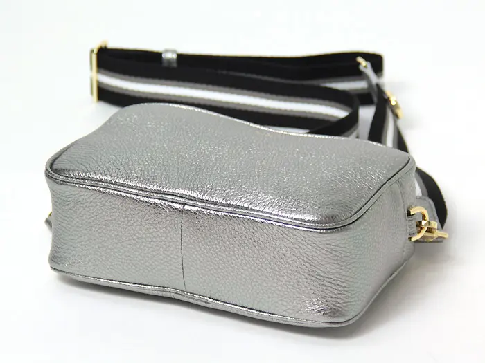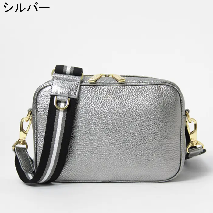 ヴィオラドーロ バッグ VIOLAd'ORO ショルダーバッグ カメラバッグ アイビーテープ ADRIA アドリア 斜めがけ 本革 型押しシュリンクレザー メタリック シルバー レディース v-1517