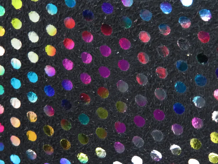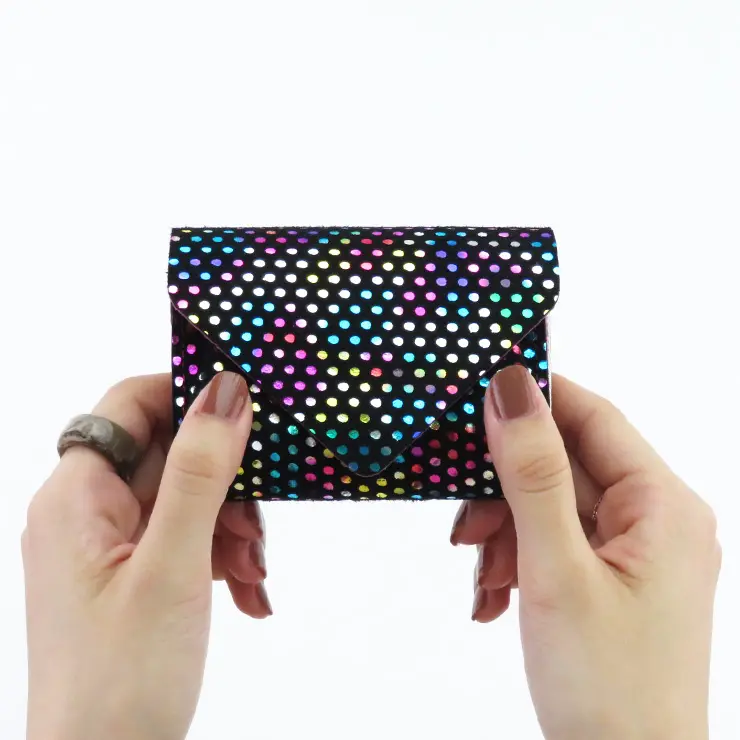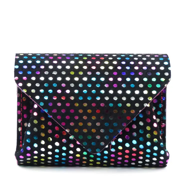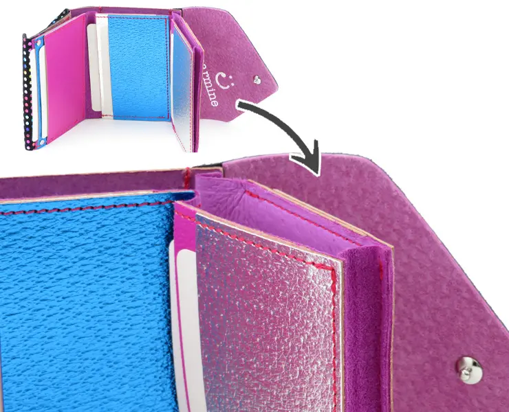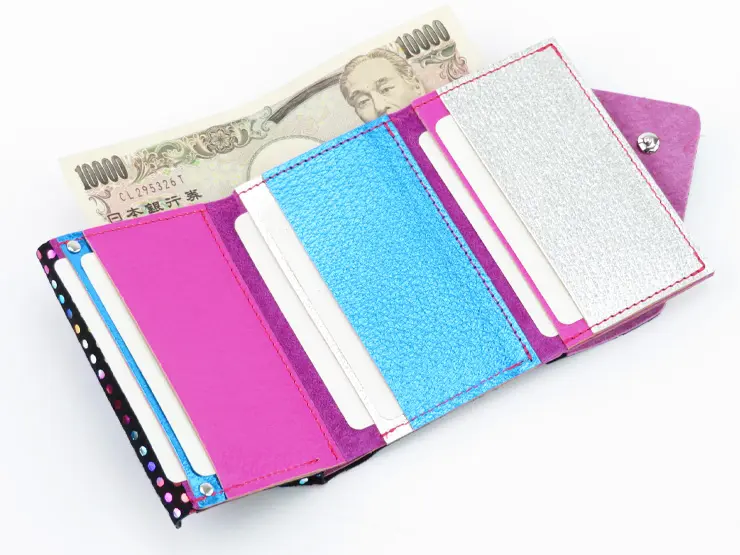 マットな質感のスエードレザーに、レインボーカラーの輝きが映える三つ折り財布。