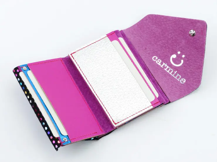 他にはない色使いが魅力で、持つだけで気分が高まるcarmineらしいミニ財布です。