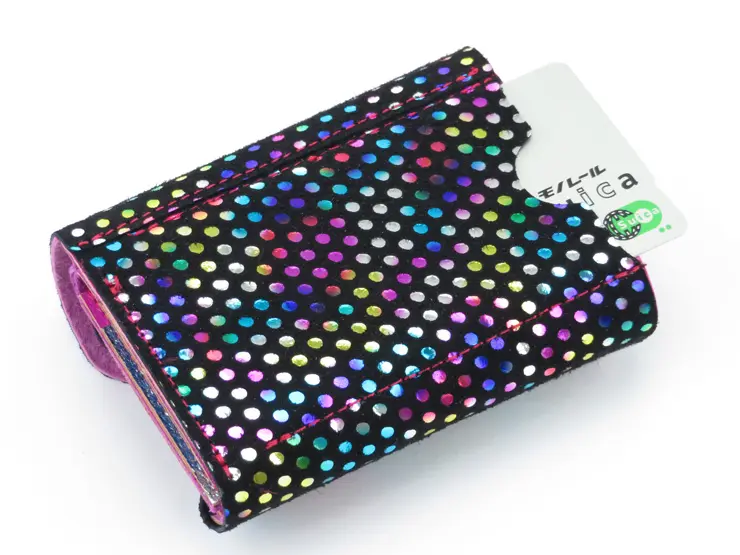 背面にはICカード用ポケット付きで、電子マネーでの支払いも快適です。