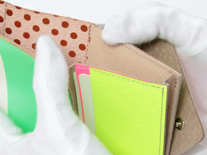 ポケットごとに異なるカラーリングを施し、開くたびに楽しい気分に。