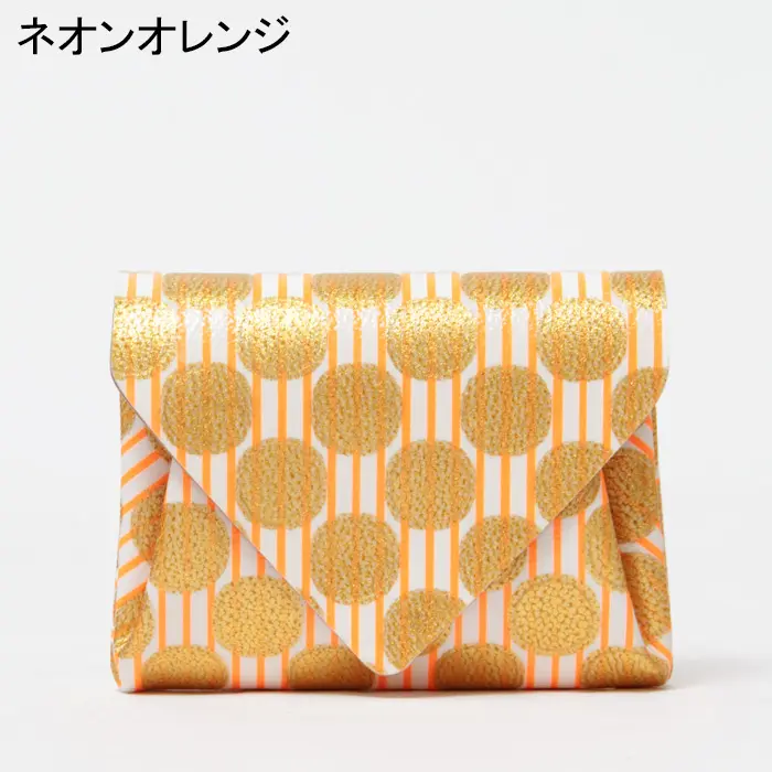ネオンオレンジのラインとゴールドのアクセントが映えるデザインで、他にはない存在感を放ちます。持つだけで気分が上がる、carmineならではの個性あふれるミニ財布です。