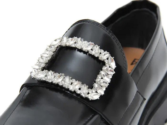 FABIO RUSCONI ファビオルスコーニ / ジュエルバックル付き ガラスレザー ローファー