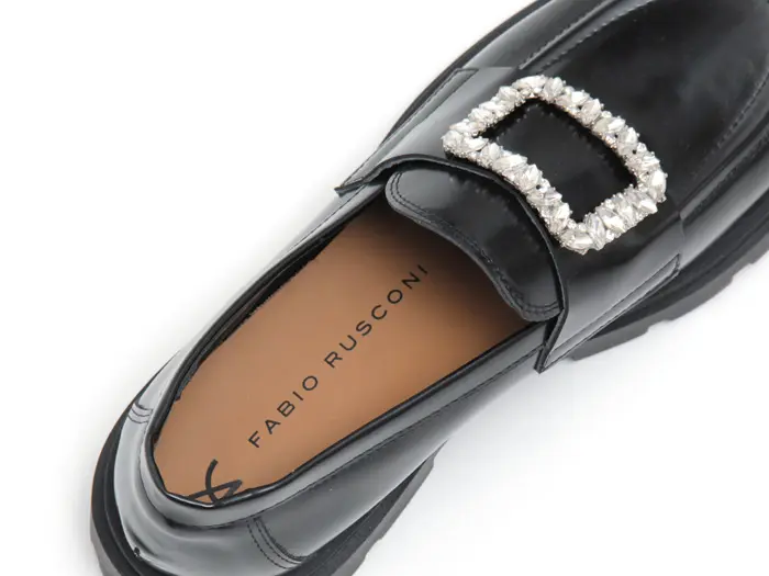 FABIO RUSCONI ファビオルスコーニ ジュエルバックル付き ガラスレザー ローファー BLACK