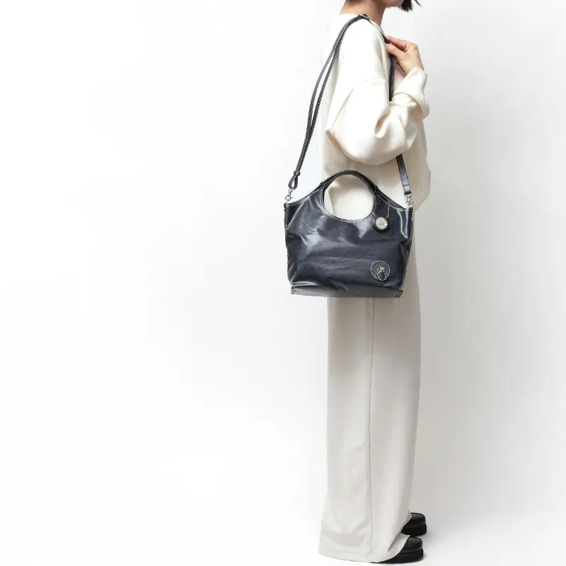 1943年創業の日本発ブランド「PELLE BORSA(ペレボルサ)」の2WAYハンドバッグ。 繊細なモノグラムが浮かぶ「Alive(アライブ)」シリーズは、上品な光沢が装いをクラスアップ。 手提げと斜め掛けの2WAY仕様で、必需品がしっかり収まる頼れる収納力も魅力です。 雨の日も安心の撥水素材で、日々のスタイルに美しく寄り添います。