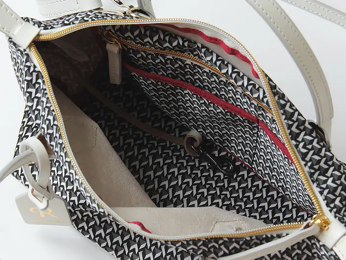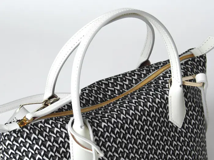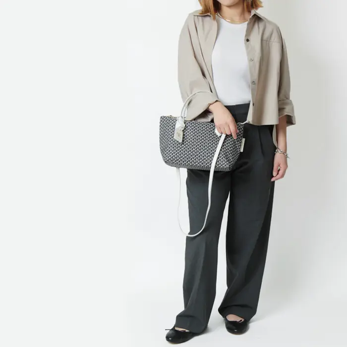 ロベルタピエリの代表作「TATAMI(タタミ)」シリーズから、2WAY仕様のトートバッグが登場。落ち着きのある幾何学柄は主張しすぎず、スタイリングに自然な華やぎを添えてくれます。イタリア製ならではの丁寧な仕立てと、思わず驚くほどの軽さも魅力。【ND】サイズは必要な荷物がきちんと収まるコンパクト設計で、ショルダーストラップ付きの斜め掛けスタイルも楽しめる、外出にちょうどいい一品です。