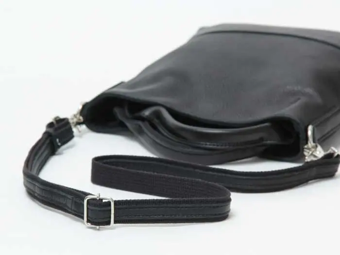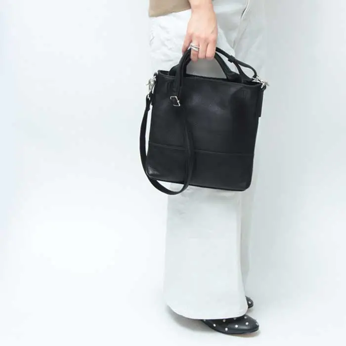 着脱・長さ調整が可能なショルダーストラップ付き。斜め掛けにすれば両手が空き、外出時やアクティブな日にも快適です。ハンドルは程よい太さがあり、手にしっくりと馴染む持ちやすい設計になっています。
