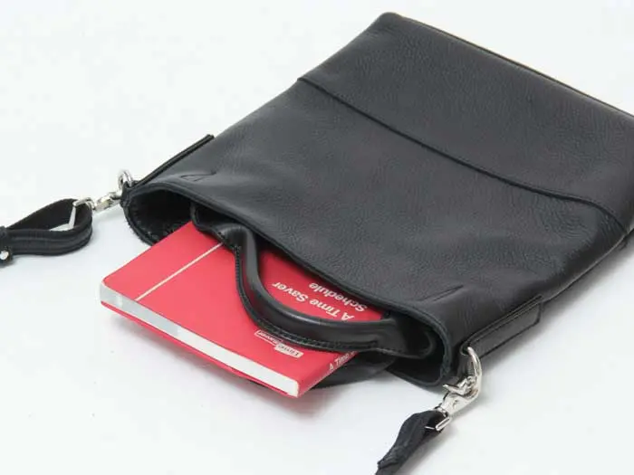 長財布やスマートフォンなどの必需品に加え、手帳サイズまで無理なく収納可能。
