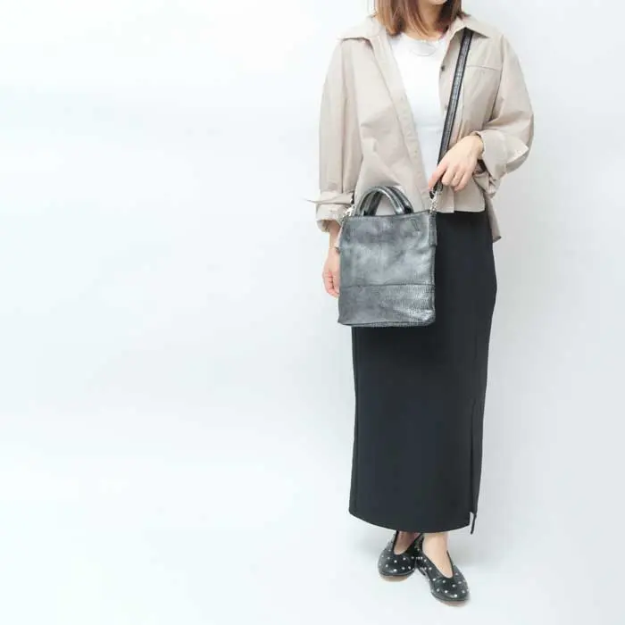 立体感のあるシボを施した牛革を採用。落ち着きのあるマットな風合いが、ミニマルなデザインを引き立て、素材の良さが際立つ上品な印象に仕上がっています。