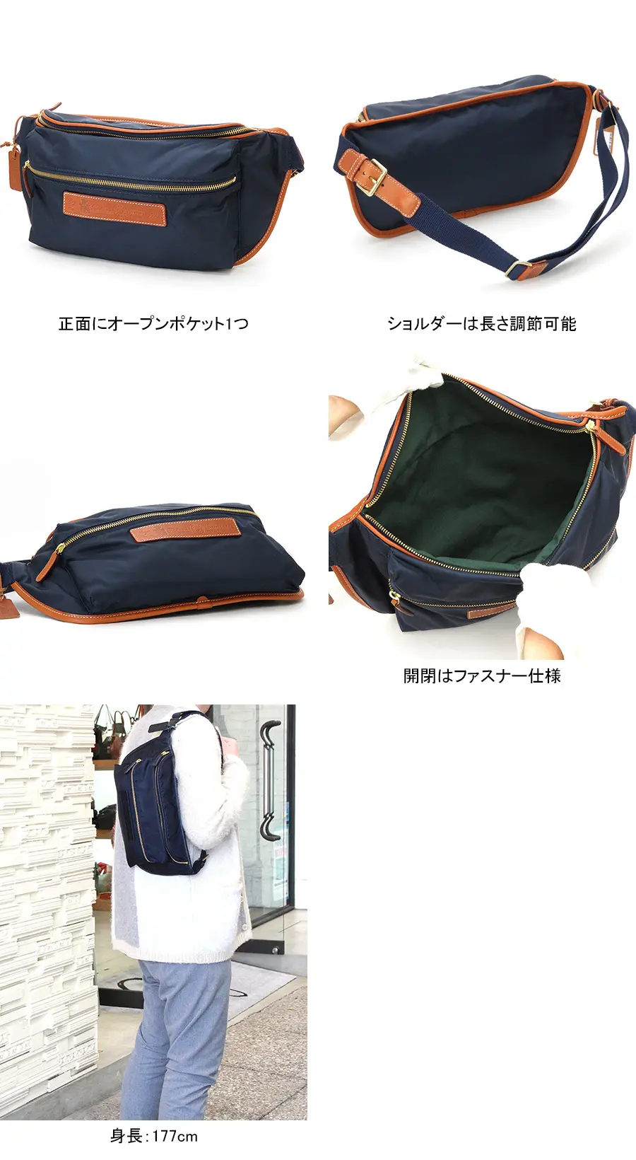 Felisi フェリージ ナイロン ボディバッグ NAVY/L.BROWN