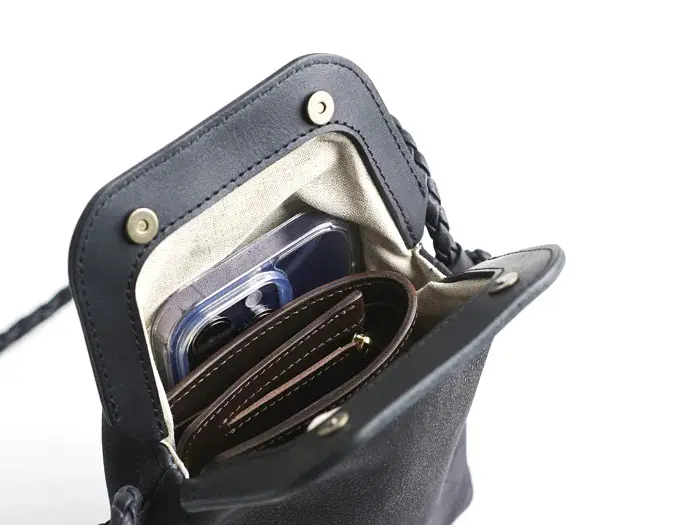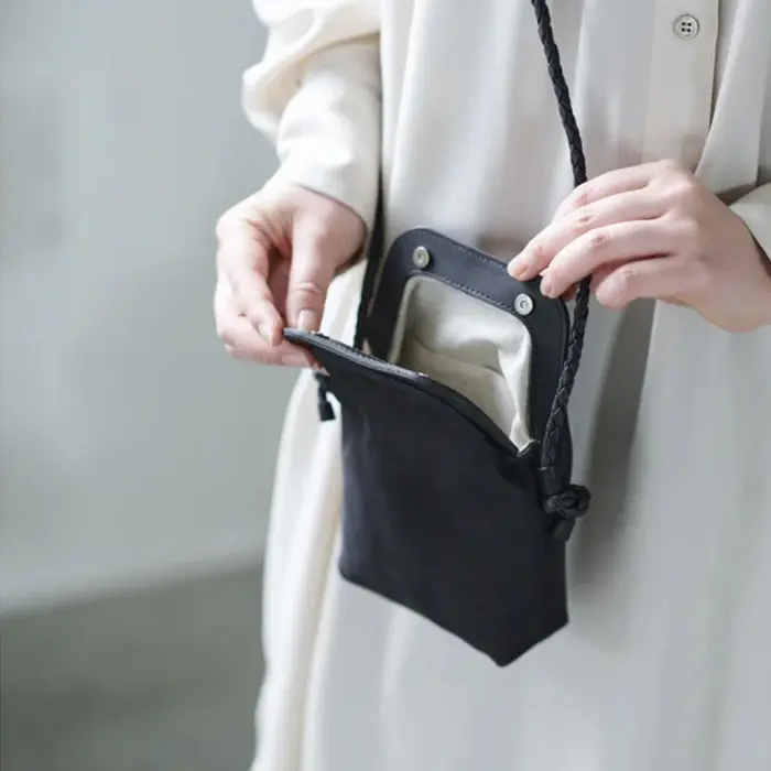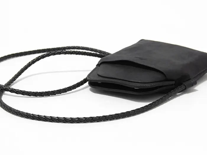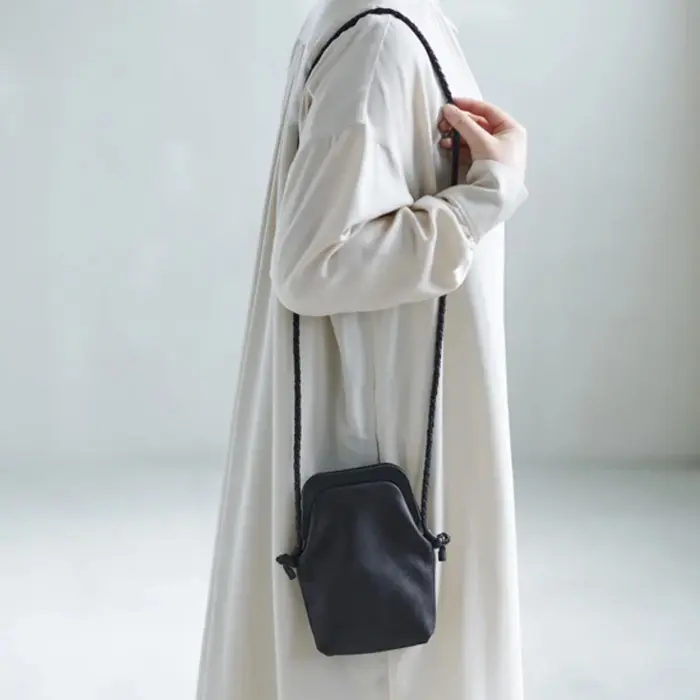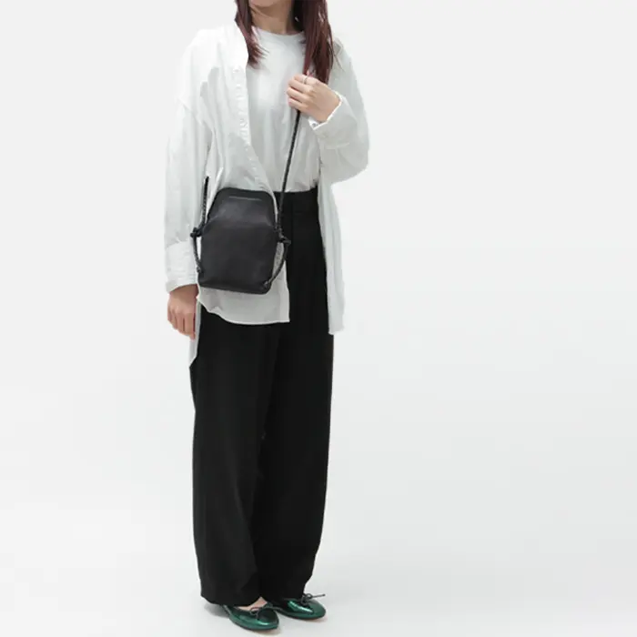 繊細に編み込まれたレザーストラップは、華奢な見た目ながらもしっかりとした強度を確保。結び目で長さ調節ができ、体型やスタイルに合わせて自在にアレンジ可能です。クロスボディで持てば両手が空き、街歩きや旅行などアクティブなシーンにも快適に使えます。