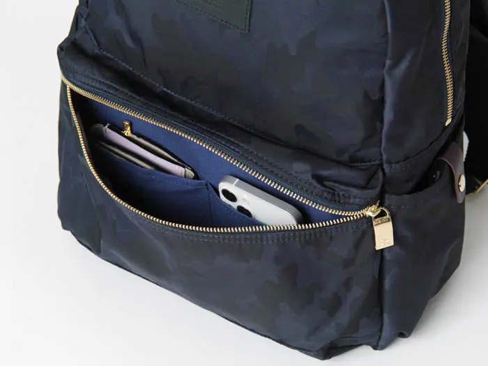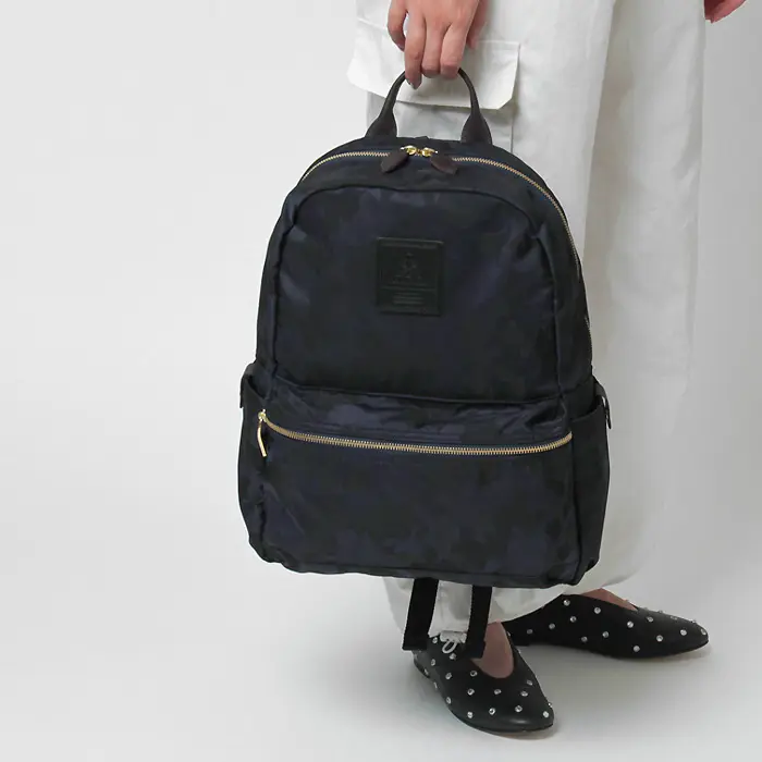 落ち着いたトーンのカモフラージュ柄が印象的な、レガロ/ディマンシェシリーズのバックパック。主張しすぎない柄行きとレザーのアクセント使いで、カジュアル感を程よく抑えた上品なデザインに仕上がっています。A4サイズ対応で収納力もあり、デイリー使いはもちろん、通勤やマザーズバッグとしても頼れる存在です。