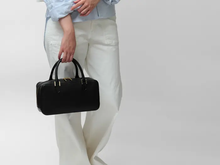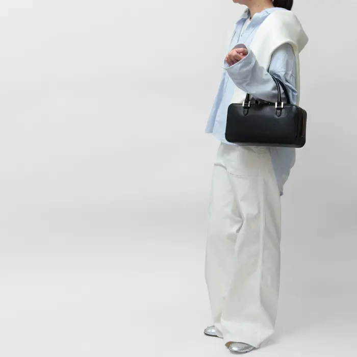 長財布がきれいに収まるファスナーポケットに加え、鍵やリップ、カードケースなど細かなアイテムを整頓できる3連ポケットを配置。使い勝手の良さに優れた実用的なハンドバッグです。美しいデザインと機能性を兼ね備え、日常使いに頼れる一品となっています。
