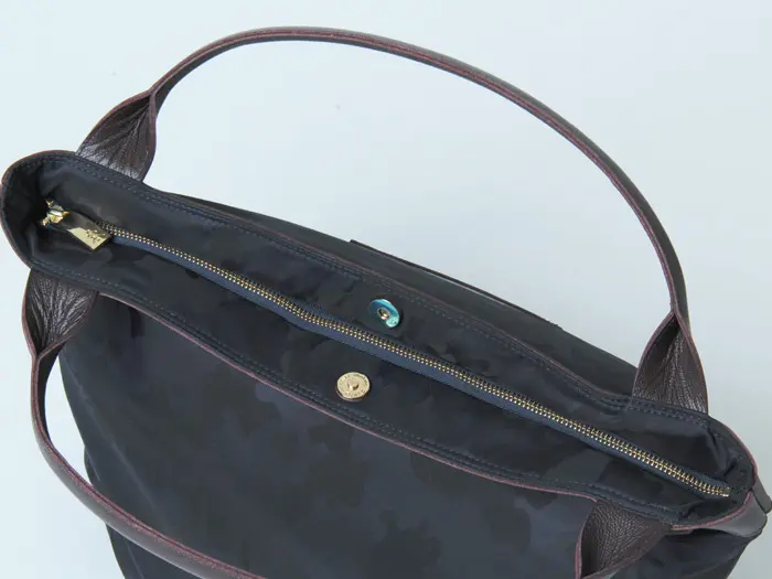 開閉はファスナーとマグネットの併用仕様。ファスナーを開けたままマグネットのみ留めれば、オープントートとしても使えます。