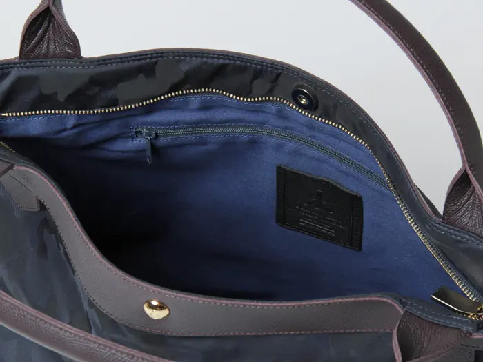 レガロ「ディマンシェNEO」シリーズは、ほんのりとした光沢感と色の濃淡で表現したワントーン迷彩が特徴。主張しすぎないミリタリー柄が、シックで洗練された印象を演出します。ネイビーはジャカード織りでさりげかな立体感をプラス。型押し牛革のハンドルが全体を引き締め、カジュアルからきれいめまで幅広いスタイルにマッチします。