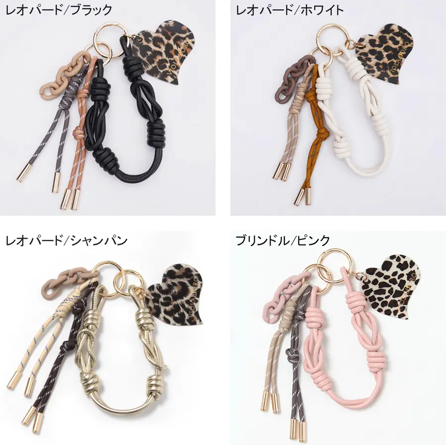 VIOLAd'ORO ヴィオラドーロ BIANCA アクリルxコード バッグチャーム レオパード/シャンパン