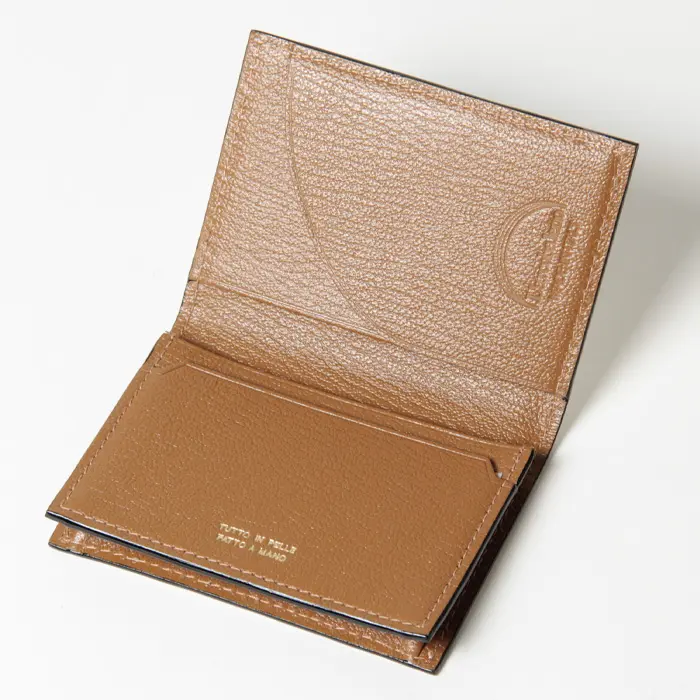 フランスの高級老舗タンナーアルラン社の美しい発色と細やかな型押しの山羊革を使用しています。繊維が細かく、軽くて、耐久性に優れた、傷のつきにくい素材で、仕立ても良く、長くご愛用いただけます。レザーには素押しのラルコバレーノの刻印と、オールレザー・オールハンドメイドの証、"TUTTO IN PELLE FATTO A MANO"が刻まれています。