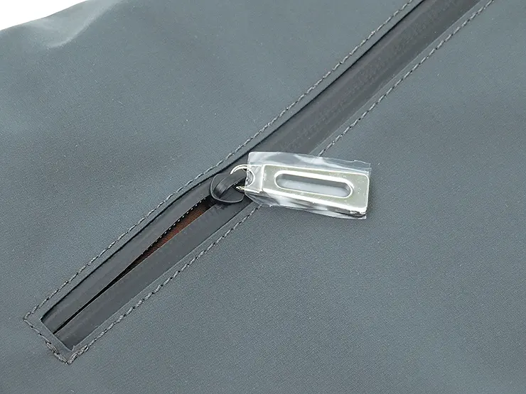 天ファスナー付きで中身が見えにくく、防犯面も安心。