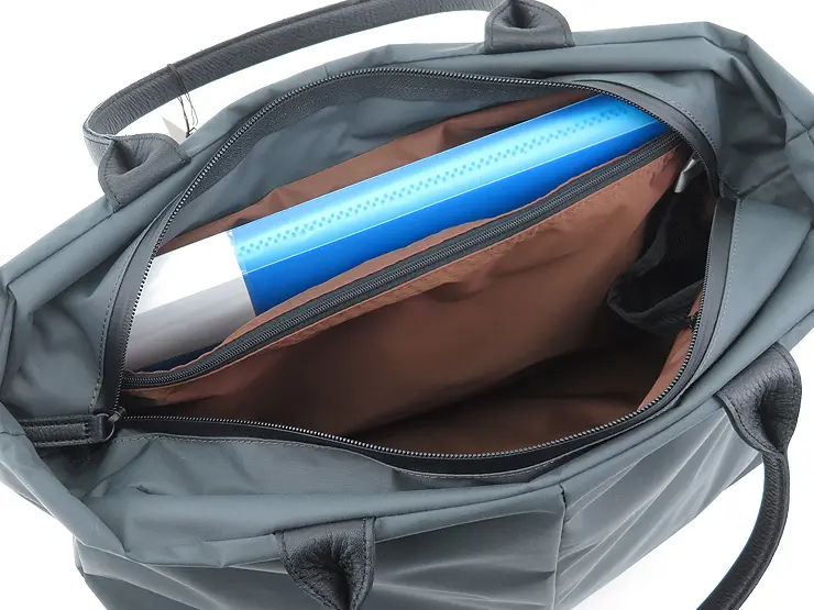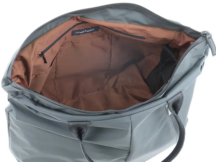 ナイロン素材ならではの柔らかな仕立てで、開閉口が大きく開き、中身が一目瞭然。 A4サイズがぴったり収まる大容量で、荷物が多い日も安心です。