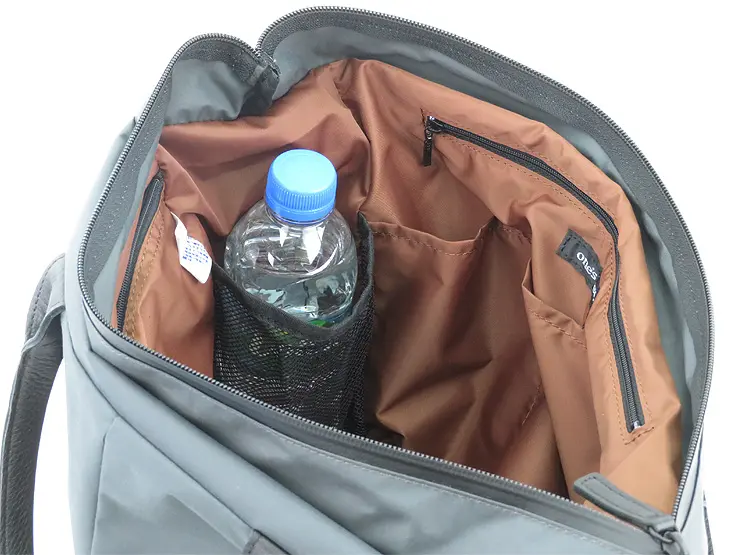 背面内側:オープンポケット×1、ファスナーポケット×2、ボトルホルダー×2