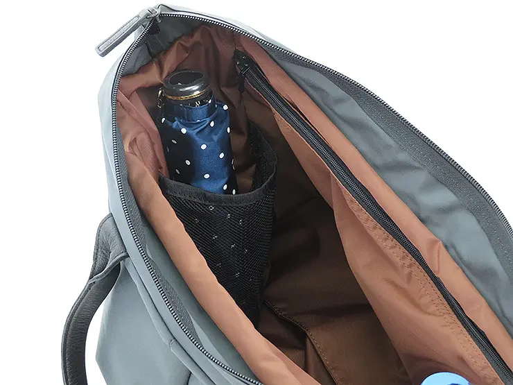 両サイドにはペットボトルホルダー付き。水筒や折りたたみ傘を立てて収納できます。