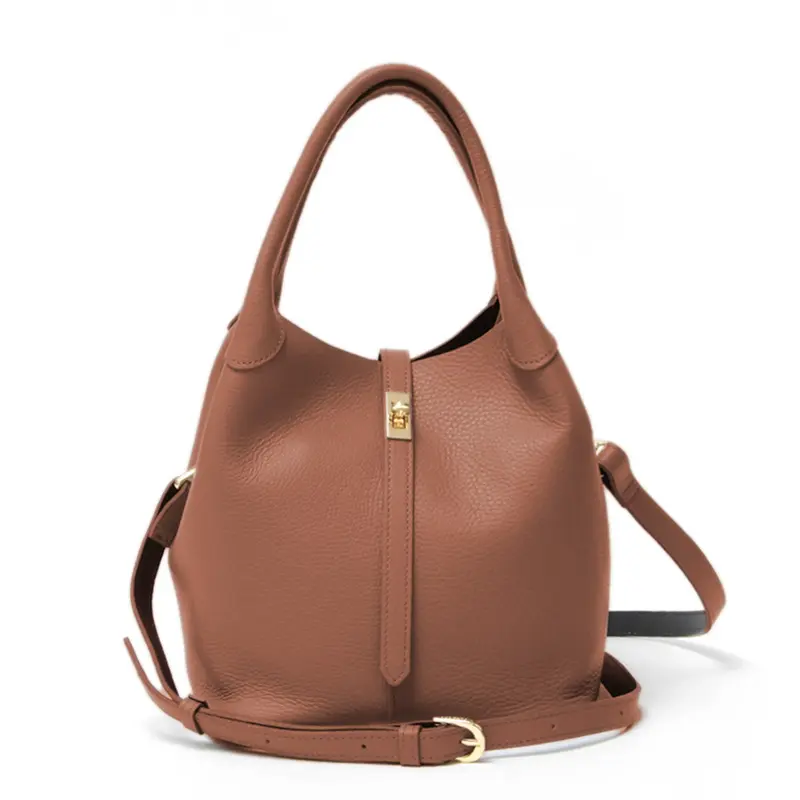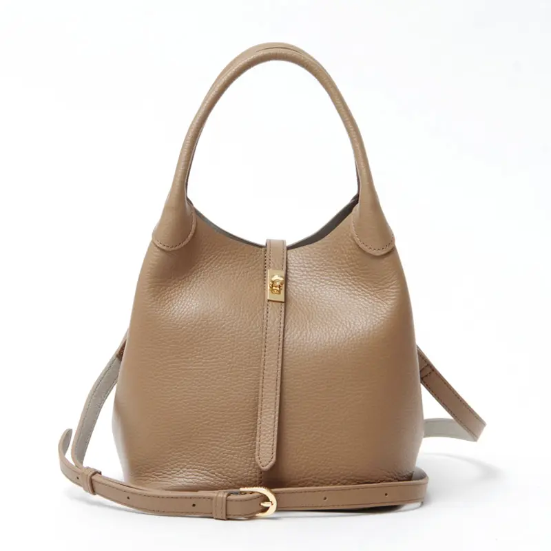 ショルダーストラップは取り外し可能で、その日の気分やスタイルに合わせた使い分けが可能です。 凛とした手持ちスタイル、軽やかな肩掛け、そしてアクティブな斜め掛け。 クロスボディにすれば両手が自由になり、ショッピングや旅行、自転車での移動も快適にサポートします。 フロントの金具が放つ繊細な輝きが、いつものコーディネートをワンランク上の仕上がりへと導きます。