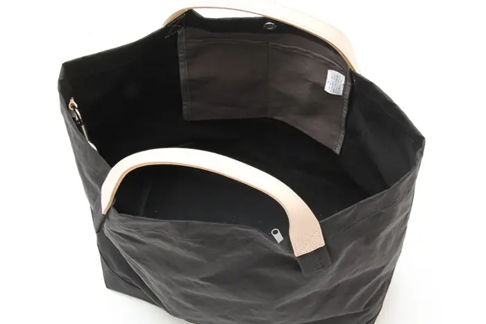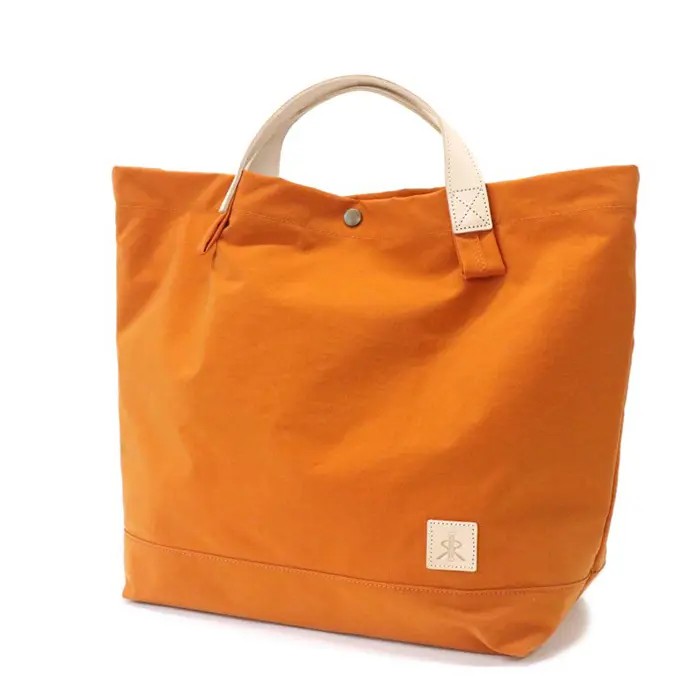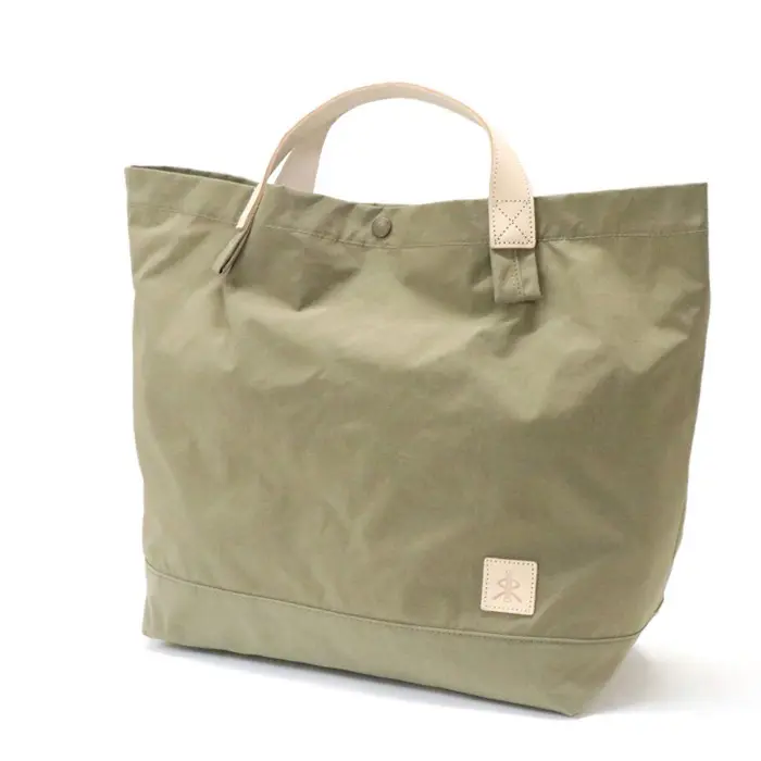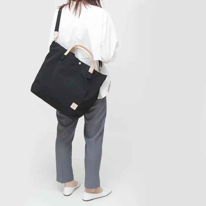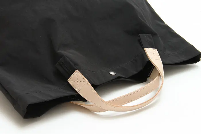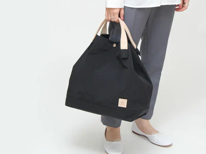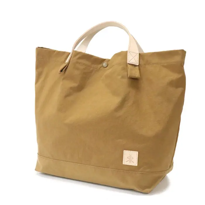 塩縮加工を施したナイロン素材を使用。繊維を縮ませることで生まれる細かな凹凸とシボ感が、ユーズドライクな表情を演出します。マットで落ち着いた質感ながら、ハリとコシがあり型崩れしにくいのも魅力。軽さと丈夫さを兼ね備え、荷物を入れなくても自立する扱いやすい素材です。