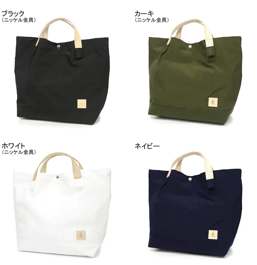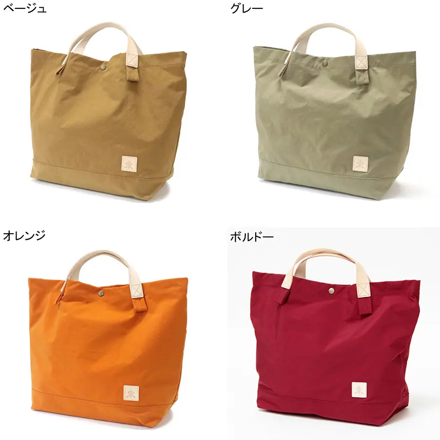 開閉はワンタッチで行えるスナップボタン仕様。A4サイズがゆったり入る大きさで、マチ幅が広く、荷物がたっぷり収まる大容量です。内ポケット付きなので、スマホやICケース、鍵などの小物が整理して収納できます。バッグ自体がとても軽いので、荷物をたくさん入れても安心です。