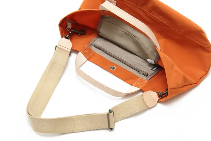 開閉はさっと留められるスナップボタン仕様。A4書類が入る大きさに加え、しっかりとしたマチで必要な荷物を無理なく収納できます。内ポケット付きでスマホや鍵、ICカードなども整理しやすく、バッグ自体が軽量なので荷物が増えても快適に持ち歩けます。